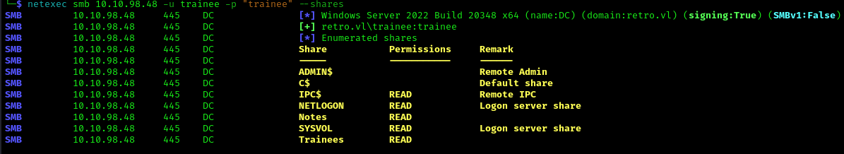 We can see that we can use null session and there is a Trainees share that looks interesting